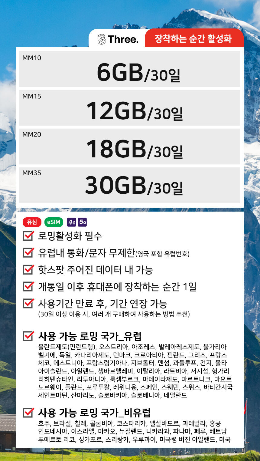 [3] 마이리얼트립 - [유럽 42개국 eSIM] 1~30일 매일 0.5 / 1 /2GB QR코드 (https://experiences.myrealtrip.com/products/3443075)